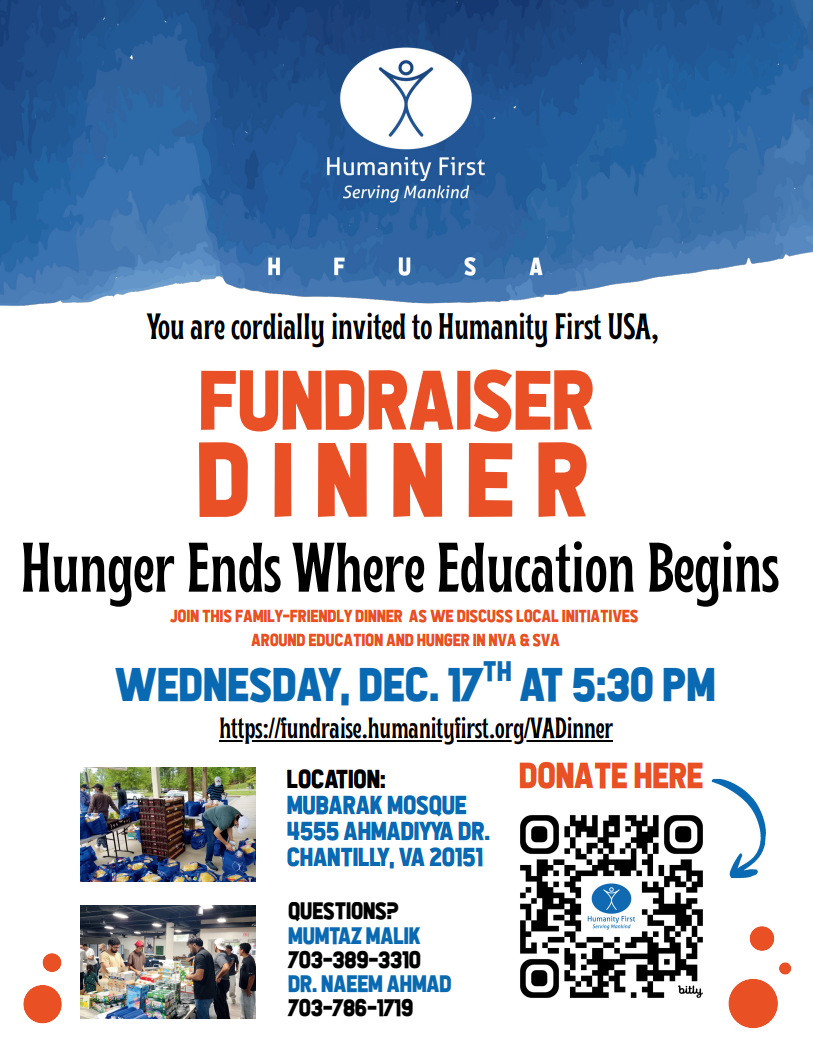 MasjidMubarak Love for All, Hatred for None Contact Us Prayer Times {{Salat}} {{Time}} Upcoming Activities December 16, 2025 Lajna Use December 16, 2025 5:30 pm - 6:30 pm December 17, 2025 Humanity First Dinner December 17, 2025 5:00 pm - 8:00 pm December 18, 2025 Salat & Mulaqat December 18, 2025 8:00 pm - 8:45 pm Mubarak Mosque, 4555 Ahmadiyya Dr, Chantilly, VA 20151, USA December 20, 2025 Boys & Girls Waqfe-Nau Class December 20, 2025 11:00 am - 1:30 pm Mubarak Mosque, 4555 Ahmadiyya Dr, Chantilly, VA 20151, USA Real Talk on Islam (Mubarak Mosque) December 20, 2025 5:00 pm - 6:00 pm Conference Room December 21, 2025 Lajna Amila Meeting December 21, 2025 Mubarak Mosque View Full Calendar Ongoing Services Always very spiritually uplifting doing worship over here.” Nau Naz – Google Reviewer “Wonderful Mosque that is really a community center and open to people of all faiths.” Zafrullah Malik – Google Reviewer “This place is the best place for worshipping. I have been there for Friday prayer.” Saleh Al Faheid – Google Reviewer X-twitter Youtube QUESTIONS? Whether you’re curious about Islam, Ahmadiyya Community, or Mubarak Mosque, we’re here to answer any questions. Let's Talk